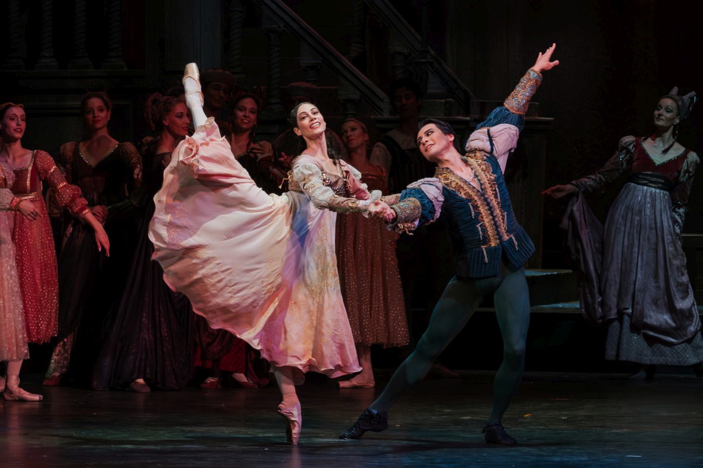 | Photos: | 1. | Maria Yakovleva (Juliet), Louis Scrivener (Romeo), and ensemble; “Romeo and Juliet” by László Seregi, Hungarian National Ballet 2025 |