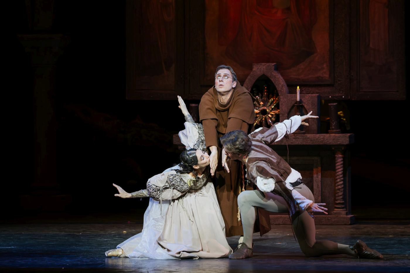 | 17. | Maxim Kovtun (Friar Laurence), Maria Yakovleva (Juliet), and Louis Scrivener (Romeo); “Romeo and Juliet” by László Seregi, Hungarian National Ballet 2025 | |